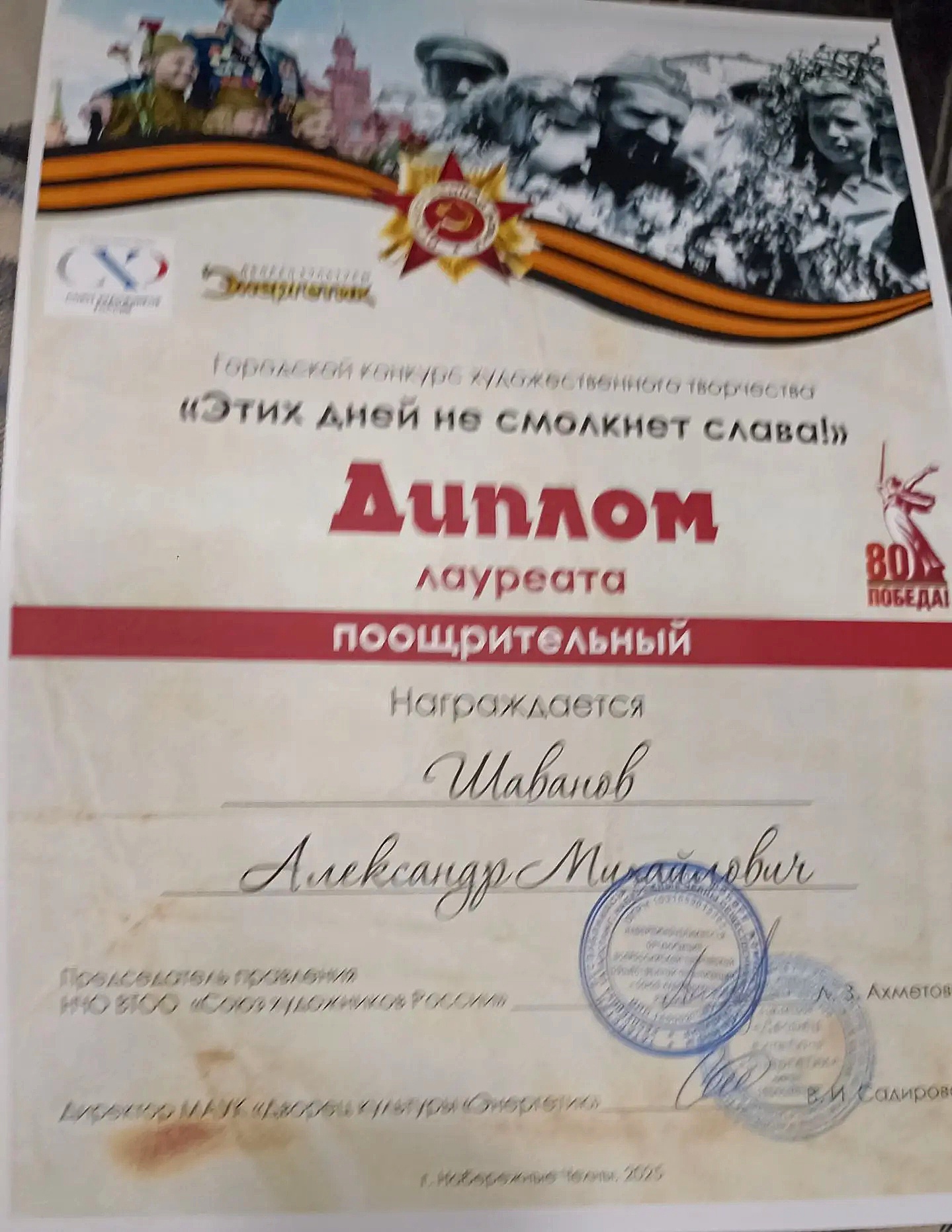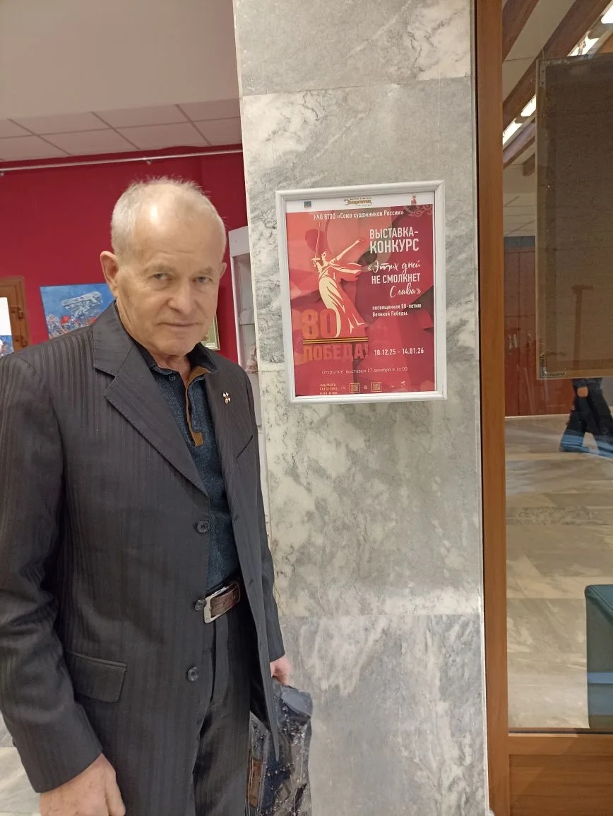 17 декабря в мраморном зале Дворца культуры «Энергетик» прошло открытие выставки Набережночелнинского отделения «Союз художников России». В этом году в рамках традиционной итоговой выставки «Художник и время» в фойе первого этажа разместилась конкурсная выставка «Этих дней не смолкнет слава», посвящённая Году Защитника Отечества. В выставке принял участие наш коллега Александр Михайлович Шаванов. О работе Александра Михайловича - картине «Молитва» мы уже рассказывали 26.10.2025. Эта работа родилась, когда наш коллега услышал песню на слова Ольги Гражданцевой «Мне вчера приснилось». Вот несколько строк из этой песни: Мне вчера приснилось, что в палате С полночи до самого утра, Стоя на коленях у кровати, О бойце молилась медсестра.